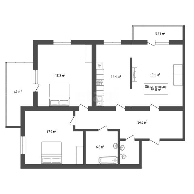 - Общая площадь93 м²