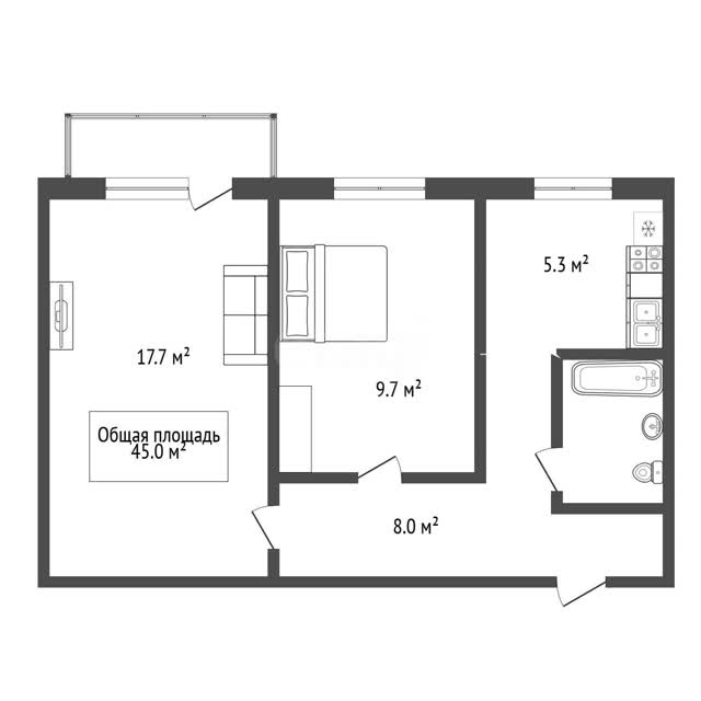 - Общая площадь45 м²