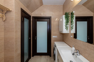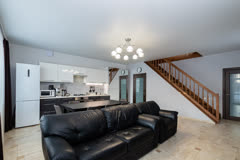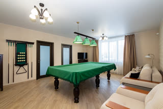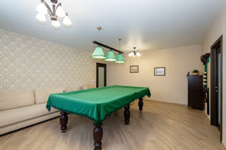Большая кухня-гостиная с камином, 4 спальни, бильярдная, сауна, 2 санузла, кладовка.